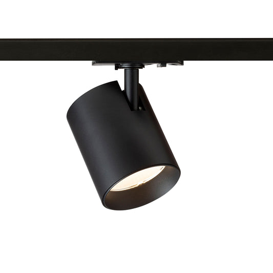 Proyector regulable en forma de tubo para carriles trifásicos, con capacidad de ajustar el ángulo del haz entre 10 - 60° con la llamada función de zoom. La temperatura del color de la luz puede cambiarse utilizando un interruptor en la luz: 3000K, 4000K, 5000K. Atenuación TRIAC.