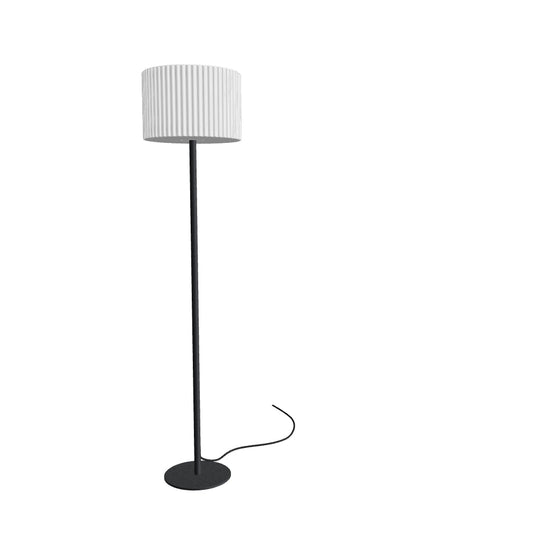 Luminaria de pie con pantalla de plástico. El cable de suministro termina con un enchufe de seguridad.