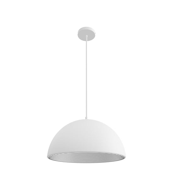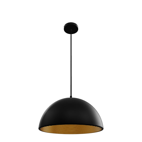 Lámpara colgante con pantalla metálica lacada o cromada. El interior de la pantalla es de color dorado o gris plateado.