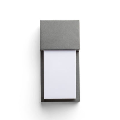 Luminaria para exteriores. Fabricada de aluminio fundido a presión, con difusor opalino para el montaje en pared. Adecuada para fuentes de luz LED con base E27.