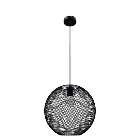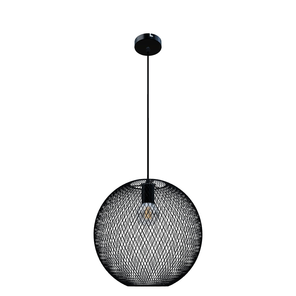 Luminaria colgante con forma de esfera hecha de malla metálica fina, adecuada para una bombilla LED decorativa con casquillo E27. El diámetro máximo de la fuente de luz es de 9,5 cm.