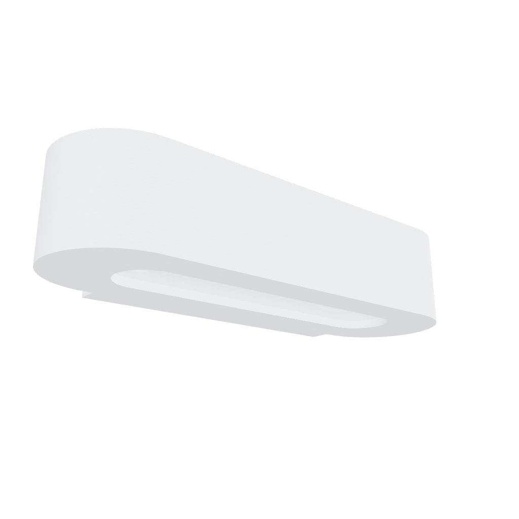 Aplique de pared de yeso con iluminación ARRIBA/ABAJO. La parte inferior está cubierta de vidrio de satén. La superficie se puede pintar con pintura para interiores.