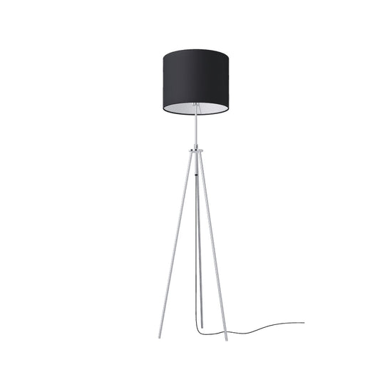 Lámpara de pie en trípode con ajuste de altura, pantalla y textil casquillo E27.