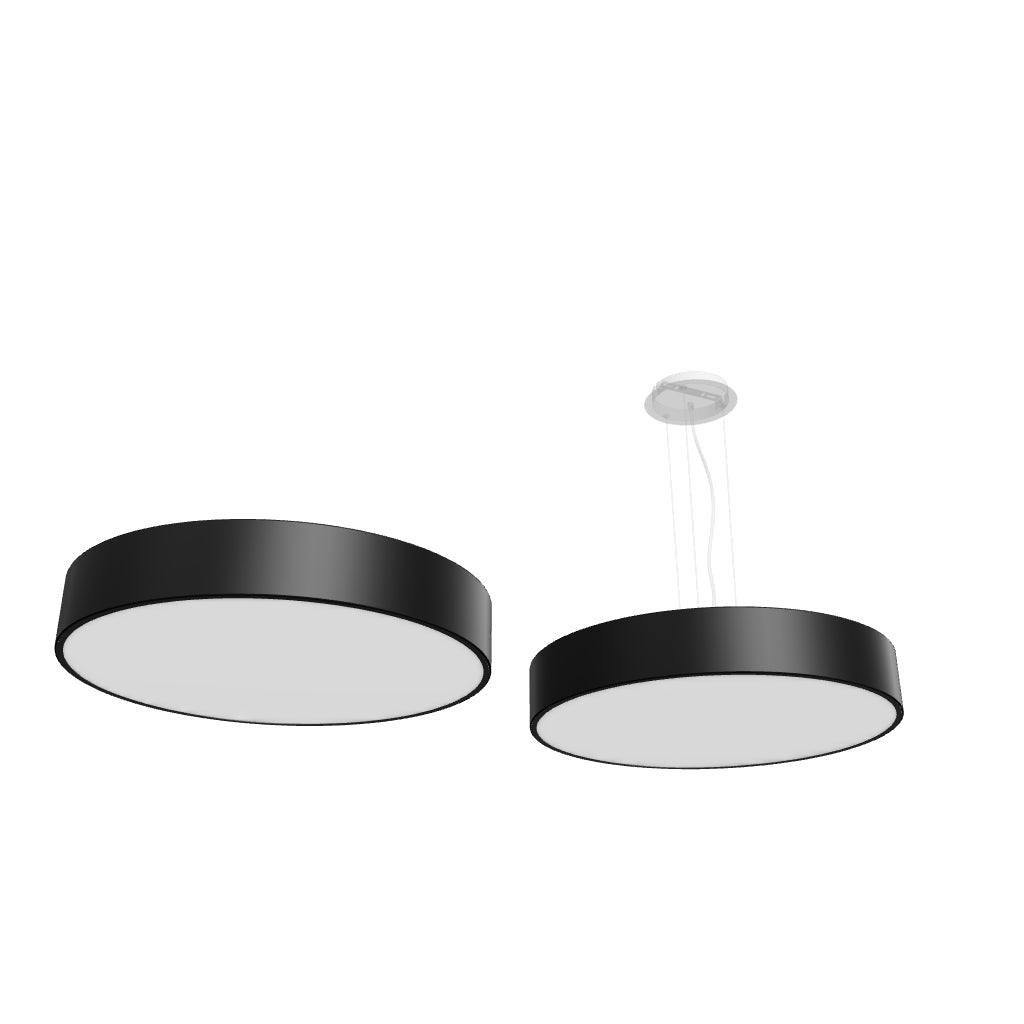 Lámpara de techo con fuente de luz LED incorporada y marco de aluminio lacado. El accesorio se suministra con un difusor de luz de policarbonato esmerilado. Con el kit de suspensión, la lámpara se puede instalar como colgante. Atenuación TRIAC.