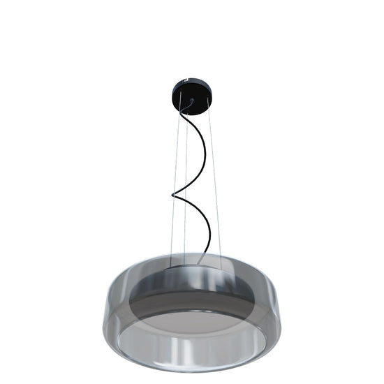 Lámpara colgante de diseño con LED incorporado y pantallas de cristal, con un exterior de cristal ahumado y un interior de cristal esmerilado. Las pequeñas burbujas en el cristal son causadas por el proceso de fabricación y no indican un defecto en la pantalla.