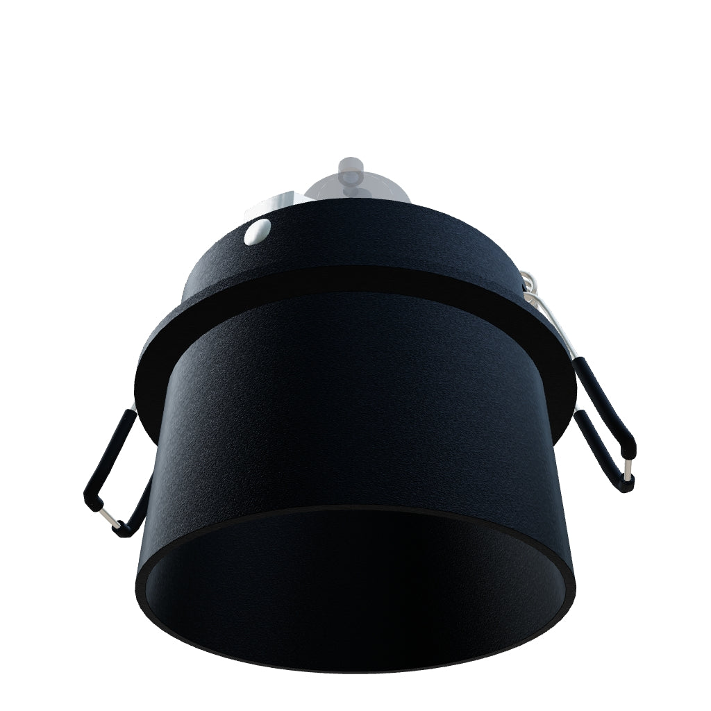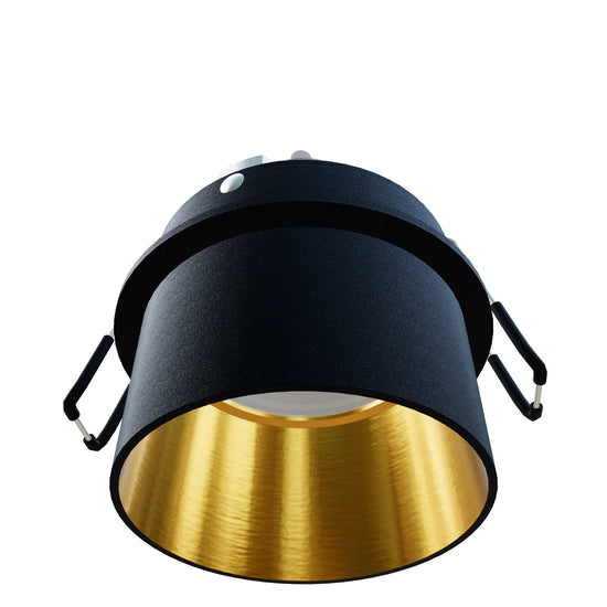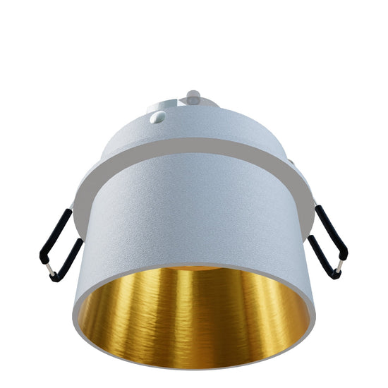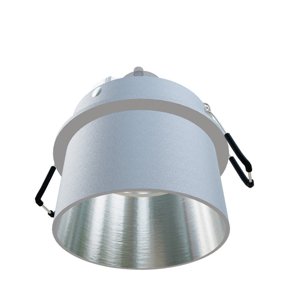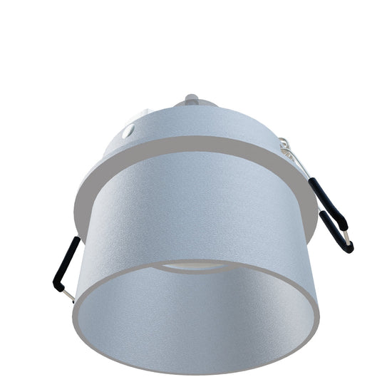 Luminaria de aluminio parcialmente empotrada en varias versiones de color, diseñada para su uso en paneles de pladur, con fuentes de luz LED que tengan una toma GU10.