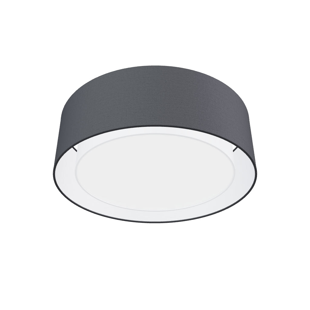 Plafón redondo con doble pantalla textil y tres casquillos E27. La pantalla interior es siempre en color blanco.