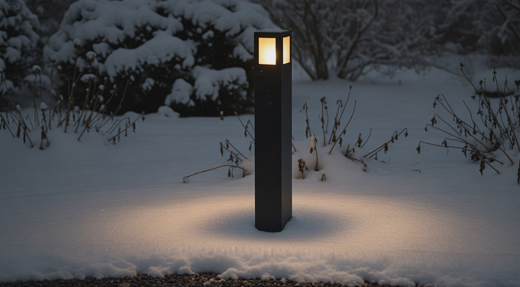 Luminaria para exteriores de pie para las fuentes de luz de bajo consumo con casquillo E27. Las cortinas están hechas de vidrio satinado.
