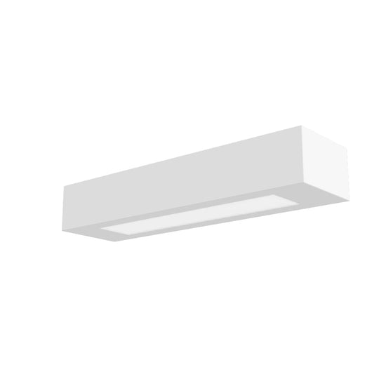 Aplique hecho de yeso con iluminación ARRIBA/ABAJO. La parte inferior del dispositivo está cubierta de vidrio satinado. Puede ser pintado con pintura para interiores.